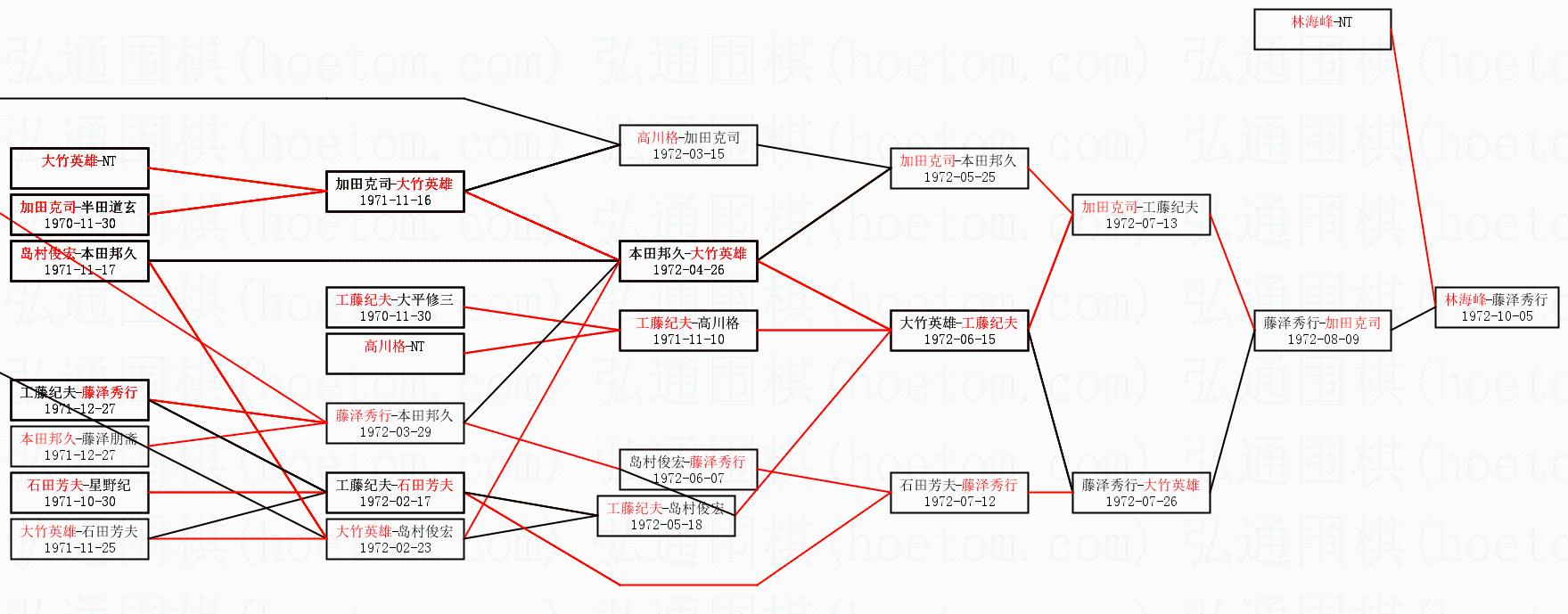 1.林海峰获得冠军,藤泽秀行获得亚军。决赛比分:林海峰4:2藤泽秀行。棋局: