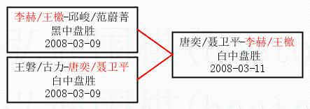 | 2008-03-11 唐奕/聂卫平-李赫/王檄 白中盘胜 | ||