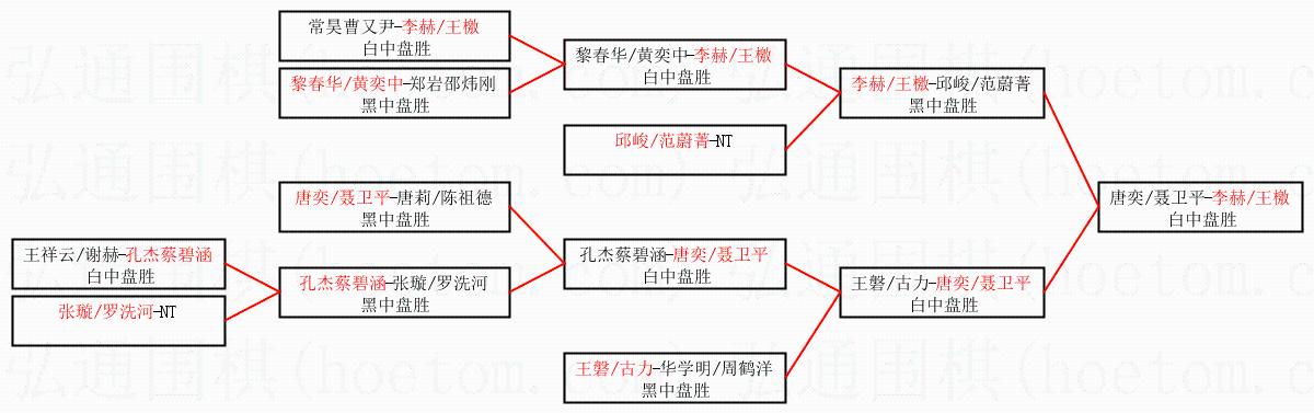 | 1.李赫/王檄获得冠军,唐奕/聂卫平获得亚军。决赛比分:李赫/王檄1:0唐奕/聂卫平。棋局: | ||