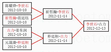 3.下半区半决赛古力获胜,比分:古力2:0朴廷桓。棋局: