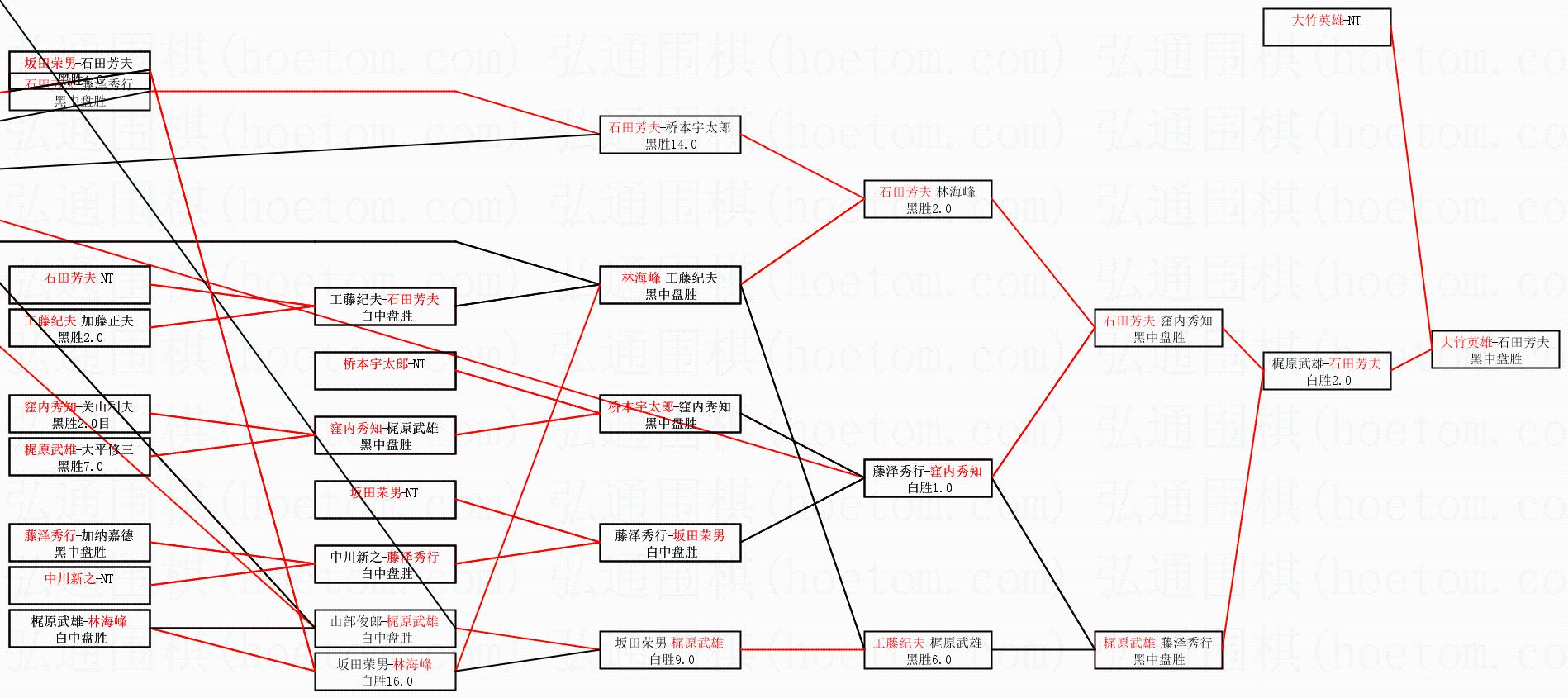 3.下半区半决赛石田芳夫获胜,比分:石田芳夫1:0梶原武雄。棋局: