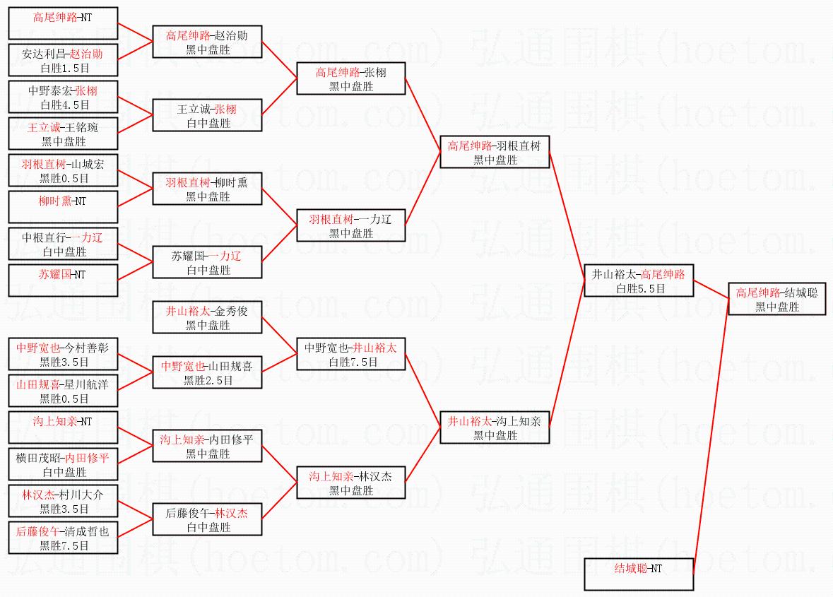 | 1.高尾绅路获得冠军,结城聪获得亚军。决赛比分:高尾绅路3:2结城聪。棋局: | ||