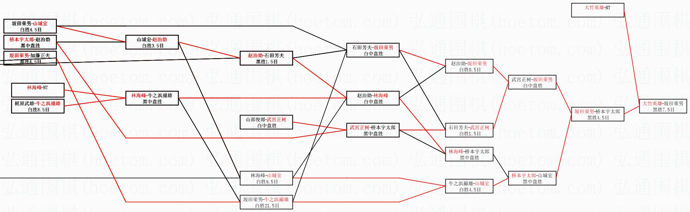 | 1.大竹英雄获得冠军,坂田荣男获得亚军。决赛比分:大竹英雄4:1坂田荣男。棋局: | ||