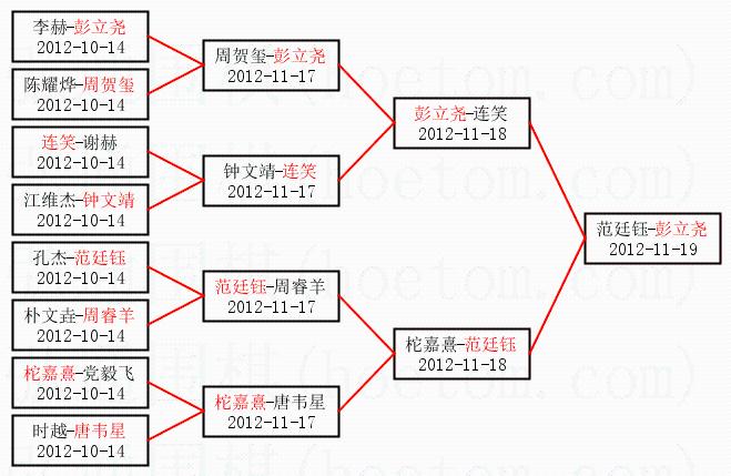 1.彭立尧获得冠军,范廷钰获得亚军。决赛比分:彭立尧1:0范廷钰。棋局: