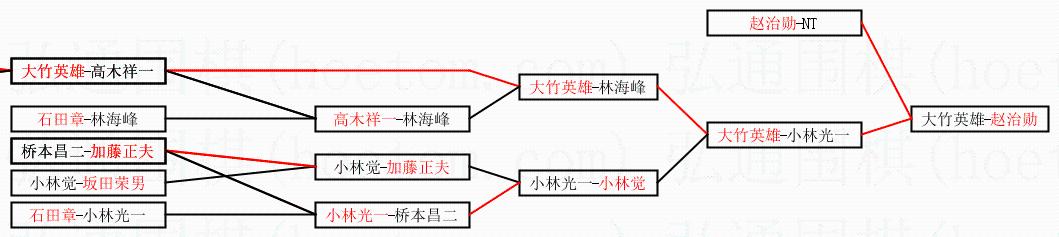 | 1.赵治勋获得冠军,大竹英雄获得亚军。决赛比分:赵治勋4:3大竹英雄。棋局: | ||