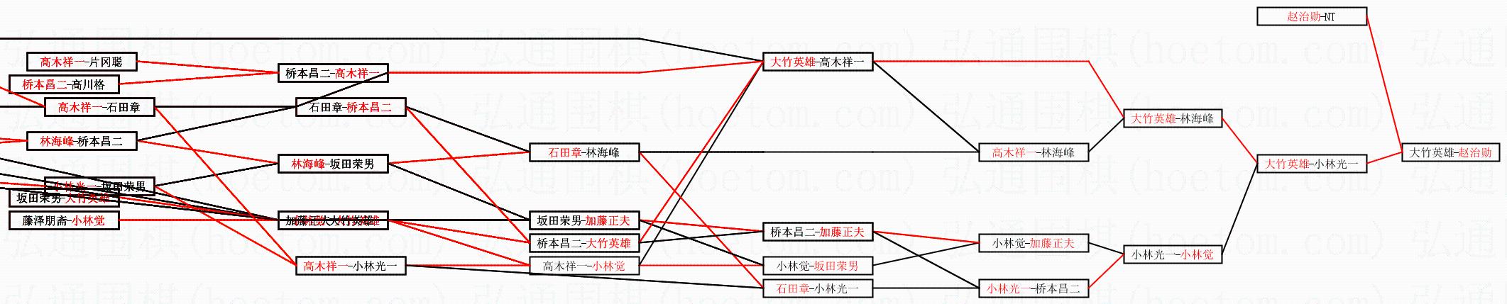 | 1.赵治勋获得冠军,大竹英雄获得亚军。决赛比分:赵治勋4:3大竹英雄。棋局: | ||