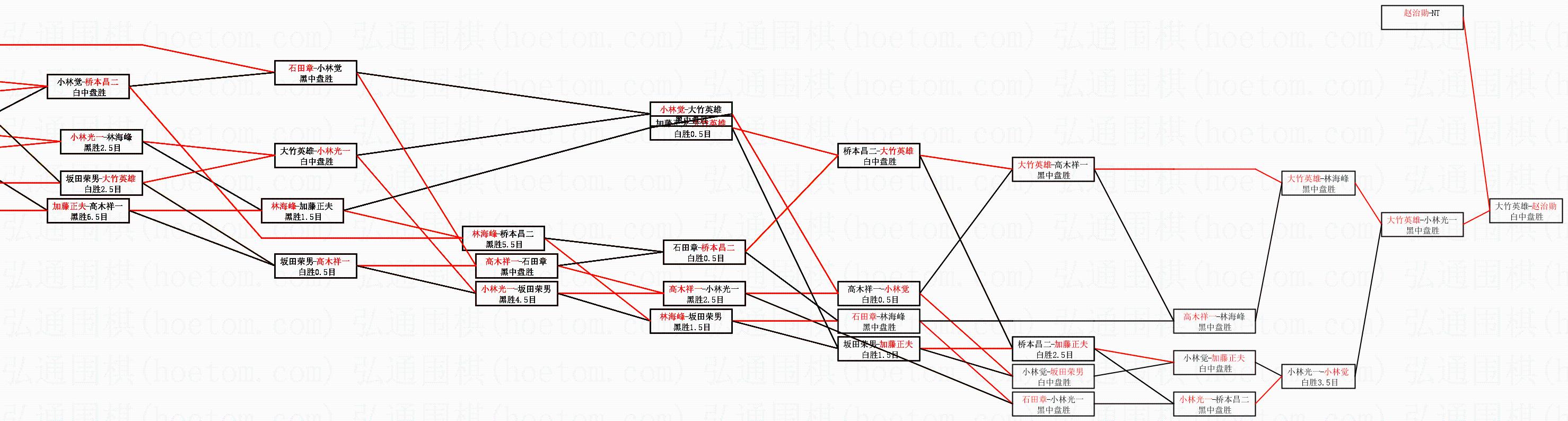 | 1.赵治勋获得冠军,大竹英雄获得亚军。决赛比分:赵治勋4:3大竹英雄。棋局: | ||