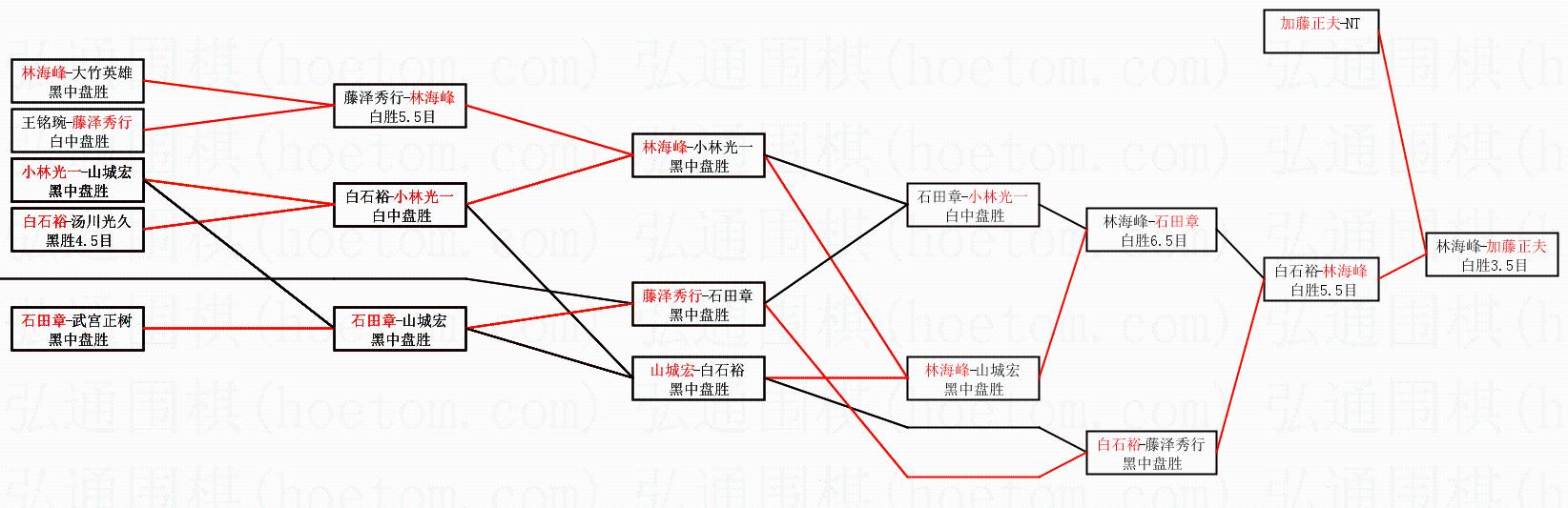 | 1.加藤正夫获得冠军,林海峰获得亚军。决赛比分:加藤正夫4:0林海峰。棋局: | ||