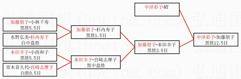 1.中泽彩子获得冠军,加藤朋子获得亚军。决赛比分:中泽彩子1:1加藤朋子。棋局: