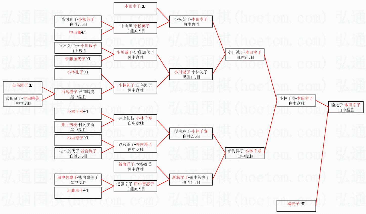 1.本田幸子获得冠军,楠光子获得亚军。决赛比分:本田幸子2:0楠光子。棋局:
