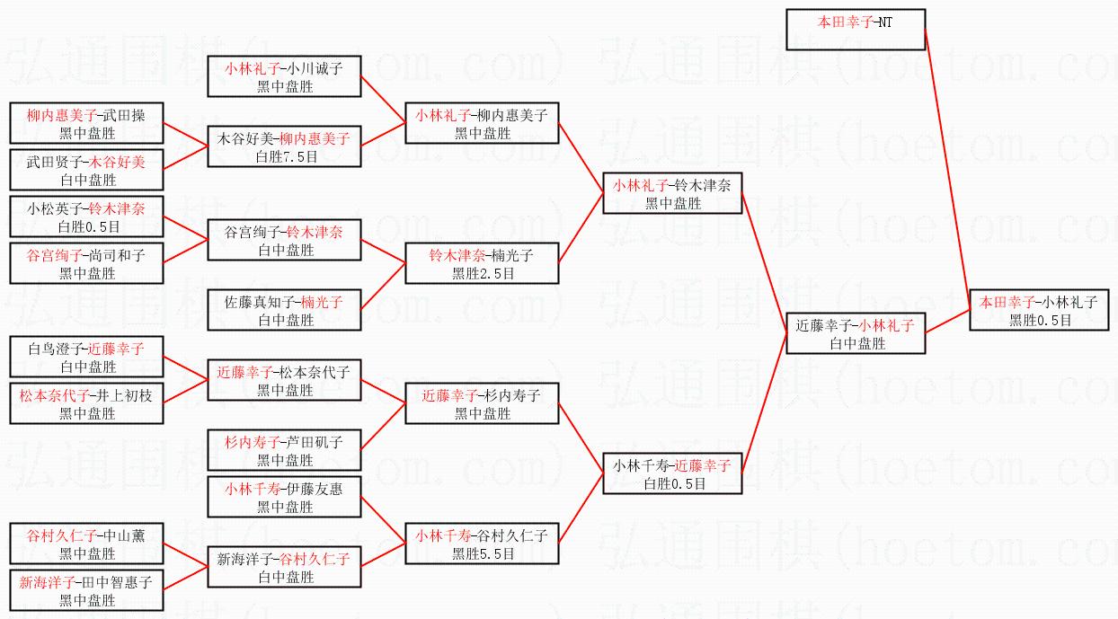 | 1.本田幸子获得冠军,小林礼子获得亚军。决赛比分:本田幸子2:1小林礼子。棋局: | ||