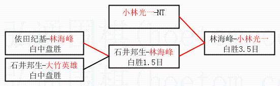 | 3.下半区半决赛林海峰获胜,比分:林海峰1:0石井邦生。棋局: | ||