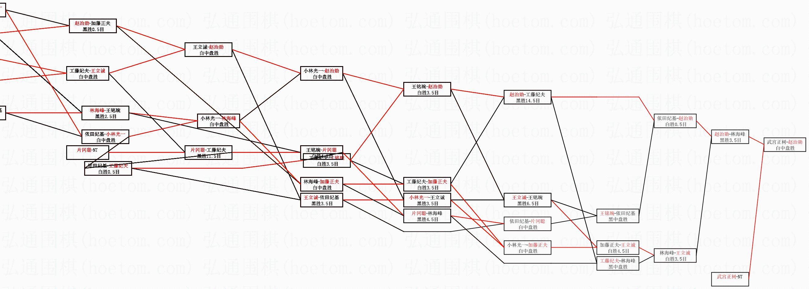 | 1.赵治勋获得冠军,武宫正树获得亚军。决赛比分:赵治勋4:2武宫正树。棋局: | ||
