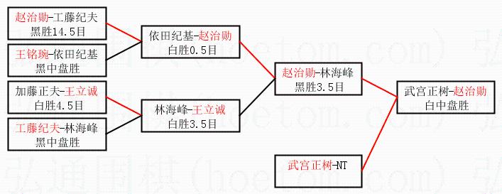 | 1.赵治勋获得冠军,武宫正树获得亚军。决赛比分:赵治勋4:2武宫正树。棋局: | ||