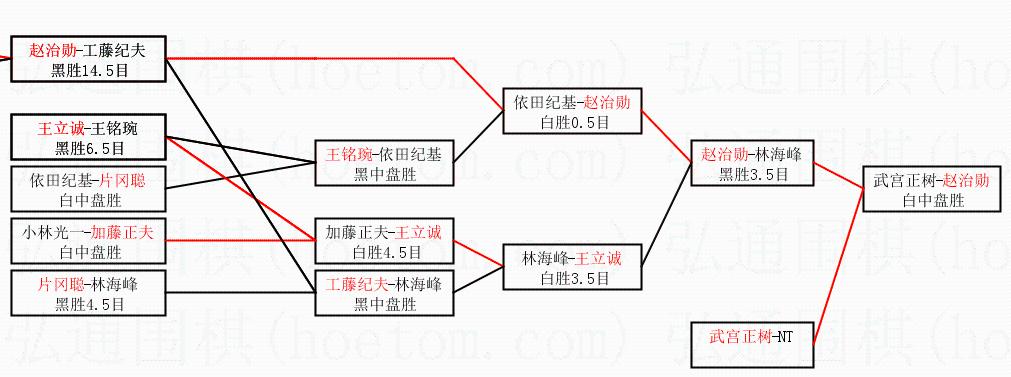 | 1.赵治勋获得冠军,武宫正树获得亚军。决赛比分:赵治勋4:2武宫正树。棋局: | ||