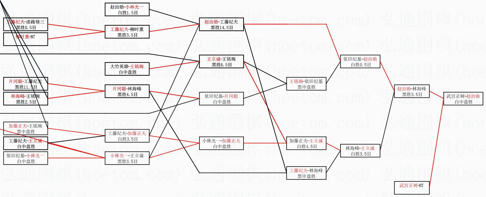 | 1.赵治勋获得冠军,武宫正树获得亚军。决赛比分:赵治勋4:2武宫正树。棋局: | ||