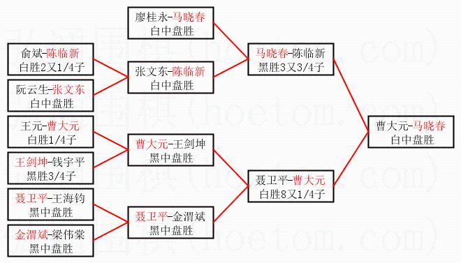 1.马晓春获得冠军,曹大元获得亚军。决赛比分:马晓春1:0曹大元。棋局: