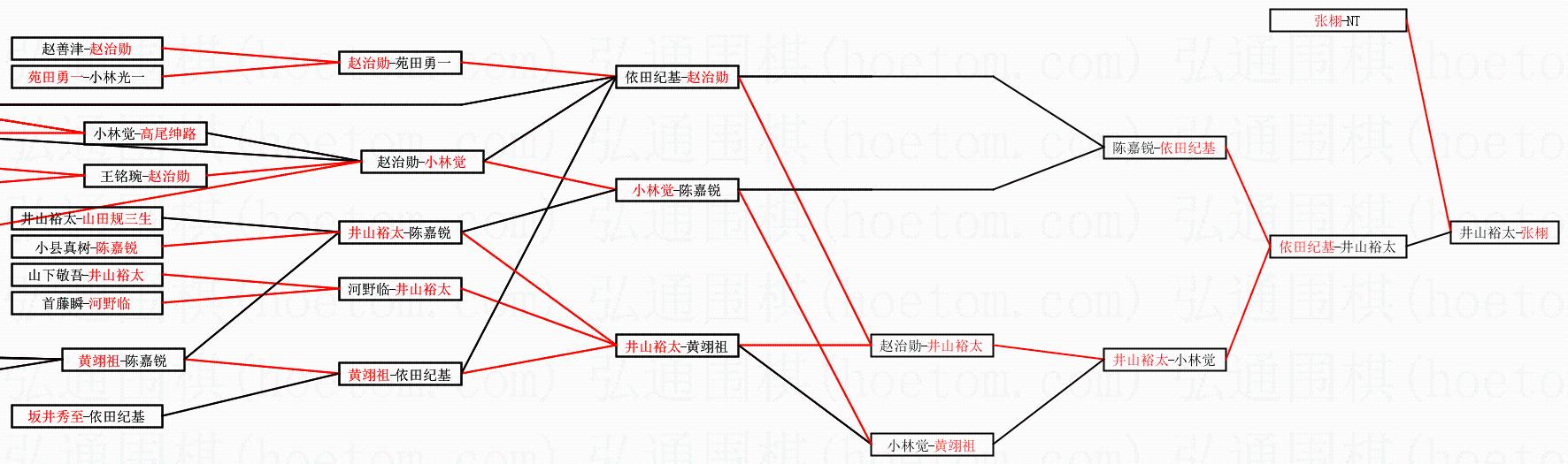1.张栩获得冠军,井山裕太获得亚军。决赛比分:张栩4:3井山裕太。棋局: