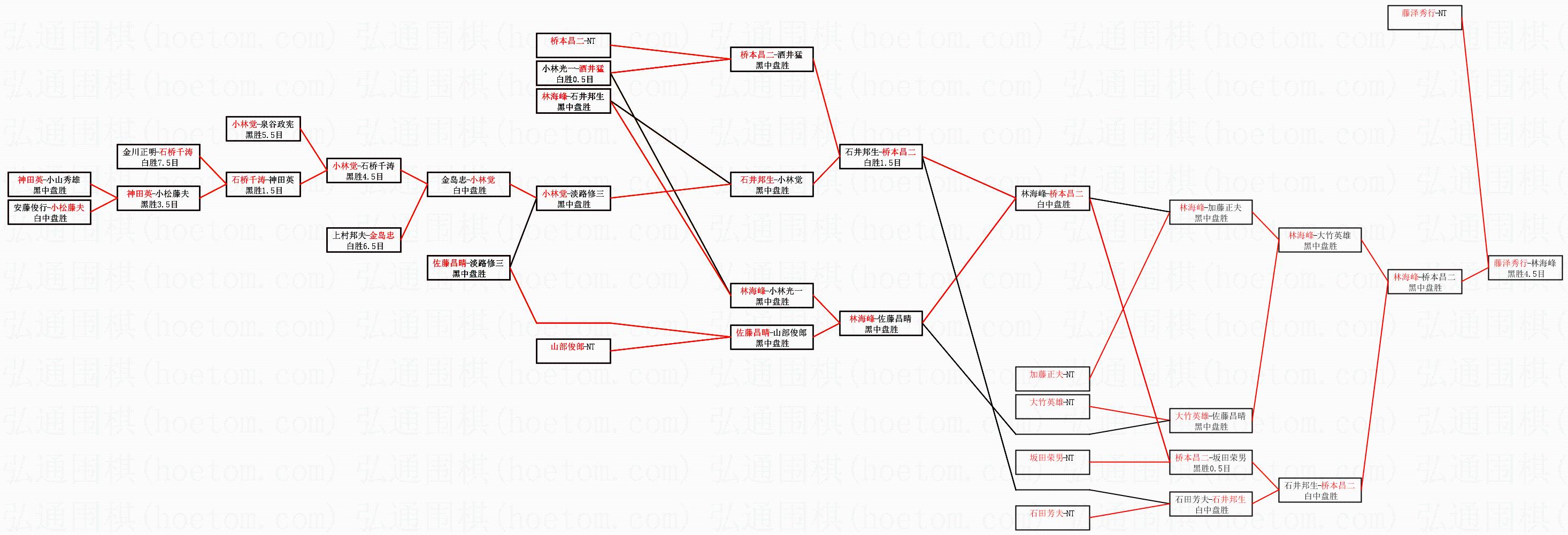 1.藤泽秀行获得冠军,林海峰获得亚军。决赛比分:藤泽秀行4:1林海峰。棋局: