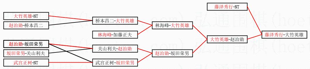 3.下半区半决赛大竹英雄获胜,比分:大竹英雄2:1赵治勋。棋局: