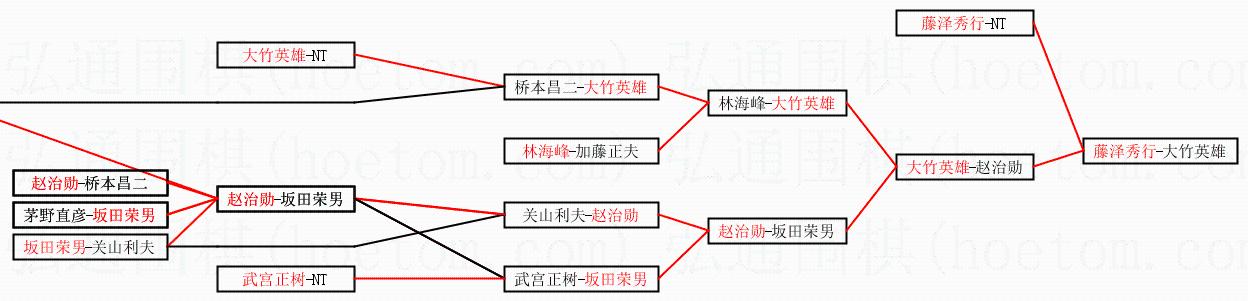 1.藤泽秀行获得冠军,大竹英雄获得亚军。决赛比分:藤泽秀行4:0大竹英雄。棋局: