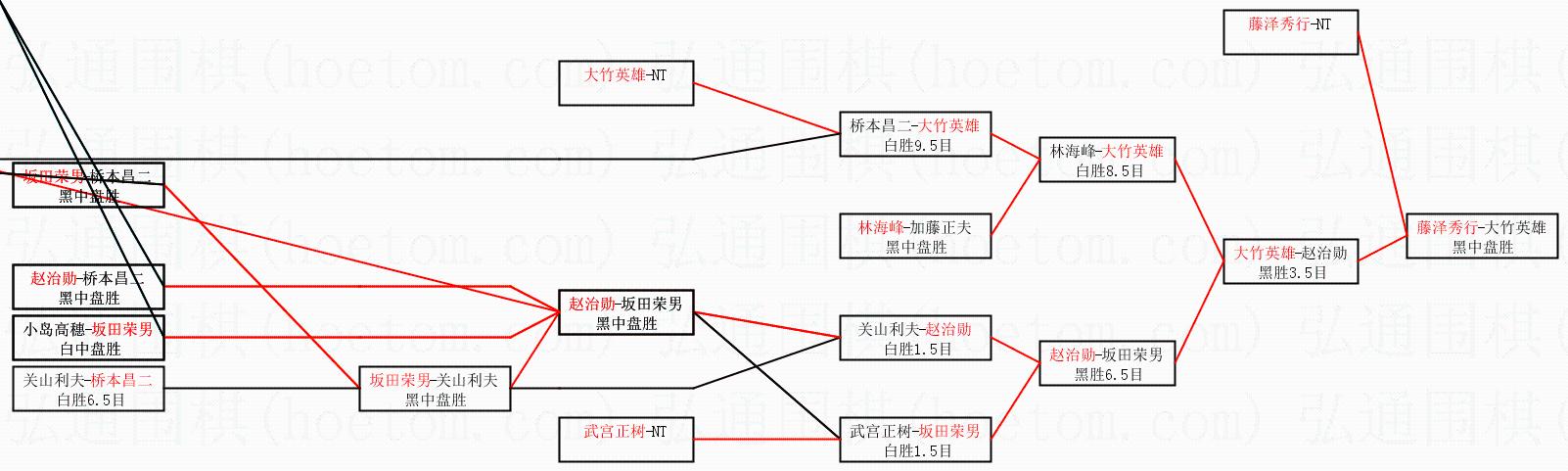 1.藤泽秀行获得冠军,大竹英雄获得亚军。决赛比分:藤泽秀行4:0大竹英雄。棋局: