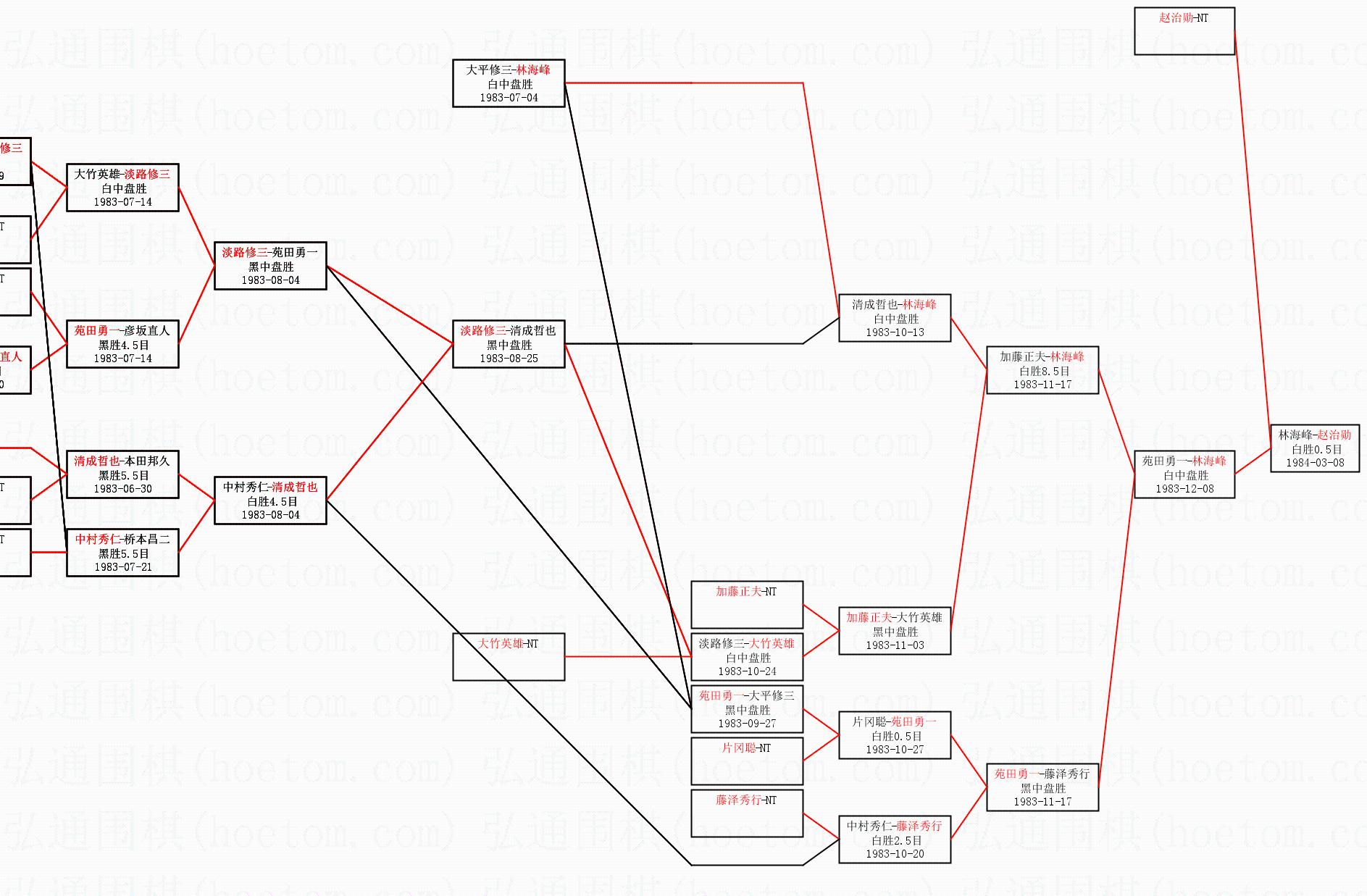 3.下半区半决赛林海峰获胜,比分:林海峰2:0苑田勇一。棋局: