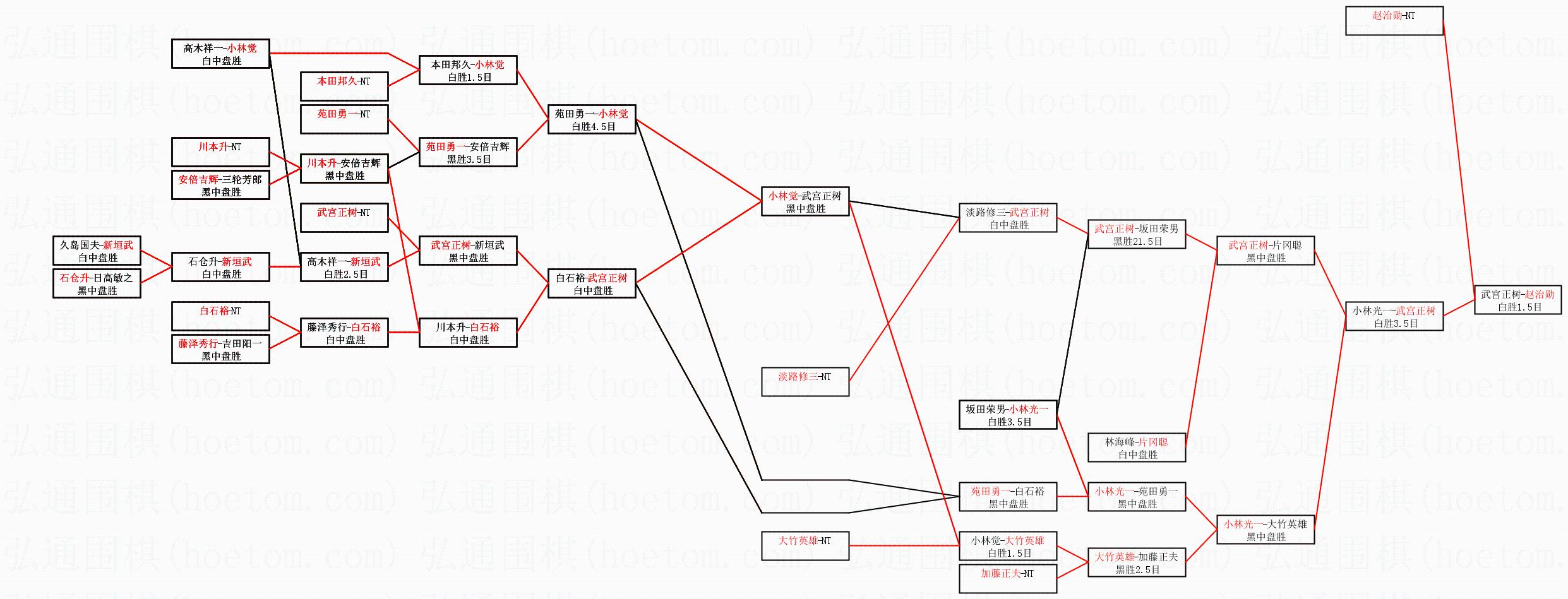 | 1.赵治勋获得冠军,武宫正树获得亚军。决赛比分:赵治勋4:3武宫正树。棋局: | ||