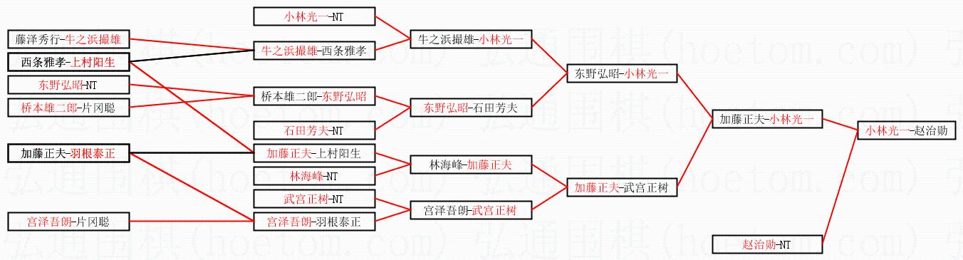 1.小林光一获得冠军,赵治勋获得亚军。决赛比分:小林光一4:2赵治勋。棋局: