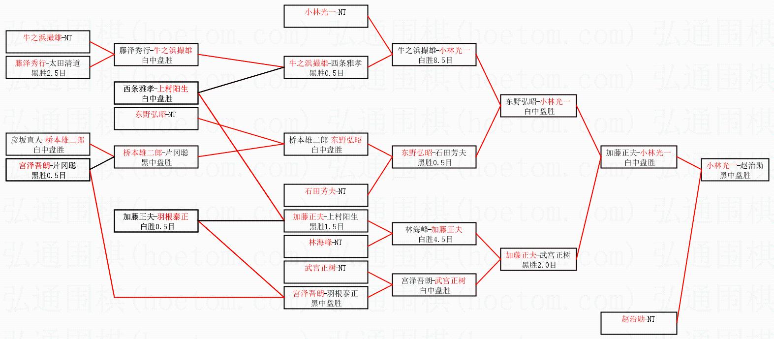 1.小林光一获得冠军,赵治勋获得亚军。决赛比分:小林光一4:2赵治勋。棋局: