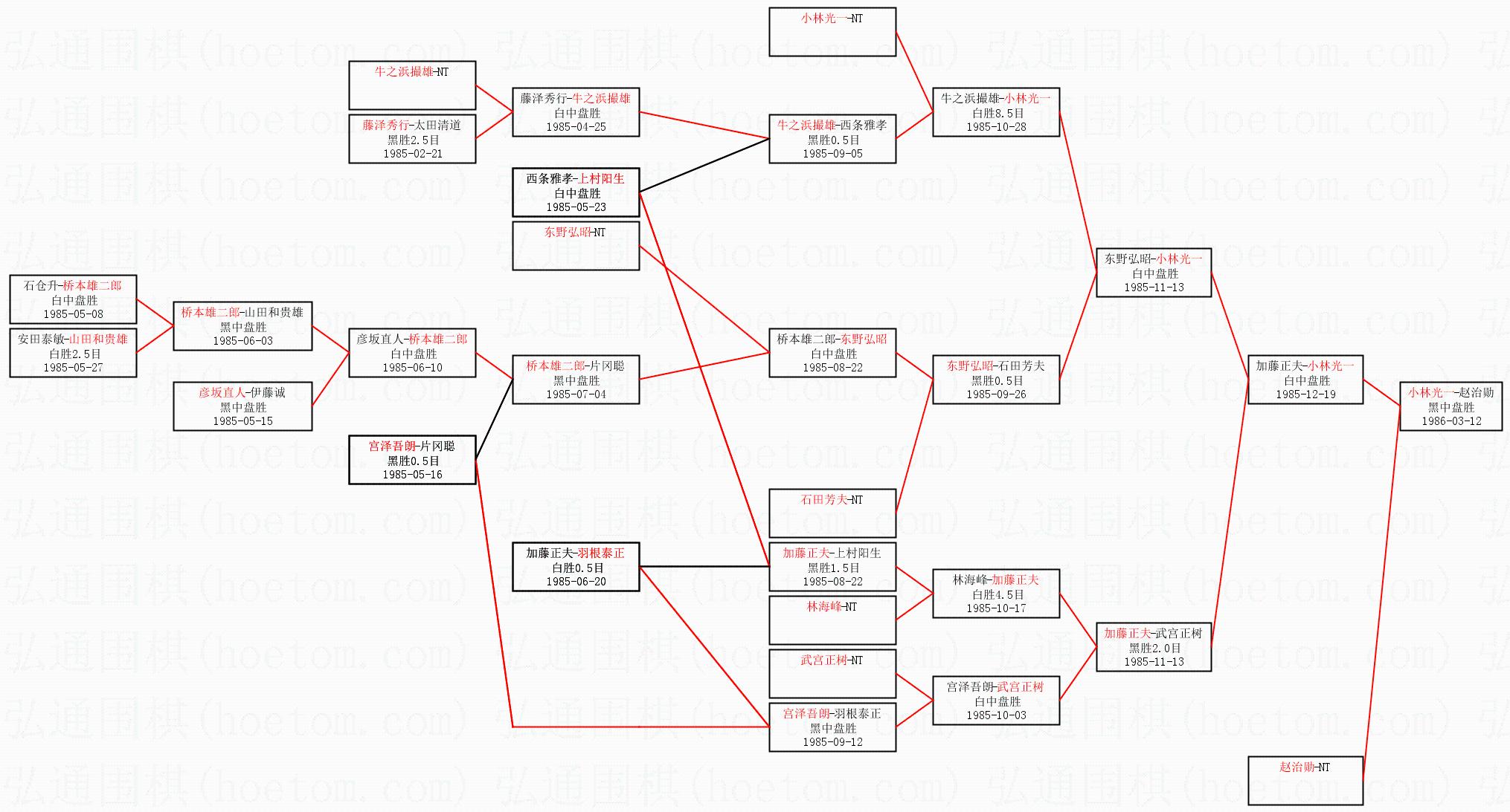 1.小林光一获得冠军,赵治勋获得亚军。决赛比分:小林光一4:2赵治勋。棋局: