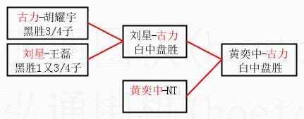 2.上半区半决赛古力获胜, 比分:古力 1:0 刘星。棋局: