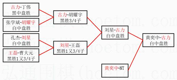 1.古力获得冠军,黄奕中获得亚军。决赛比分:古力2:1黄奕中。棋局: