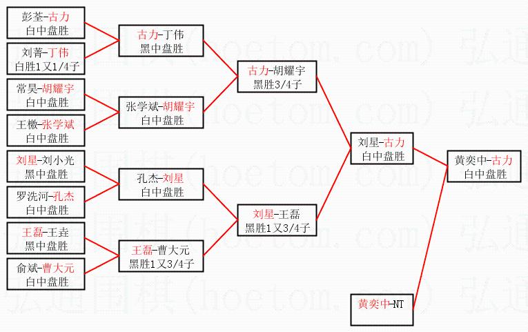 1.古力获得冠军,黄奕中获得亚军。决赛比分:古力2:1黄奕中。棋局:
