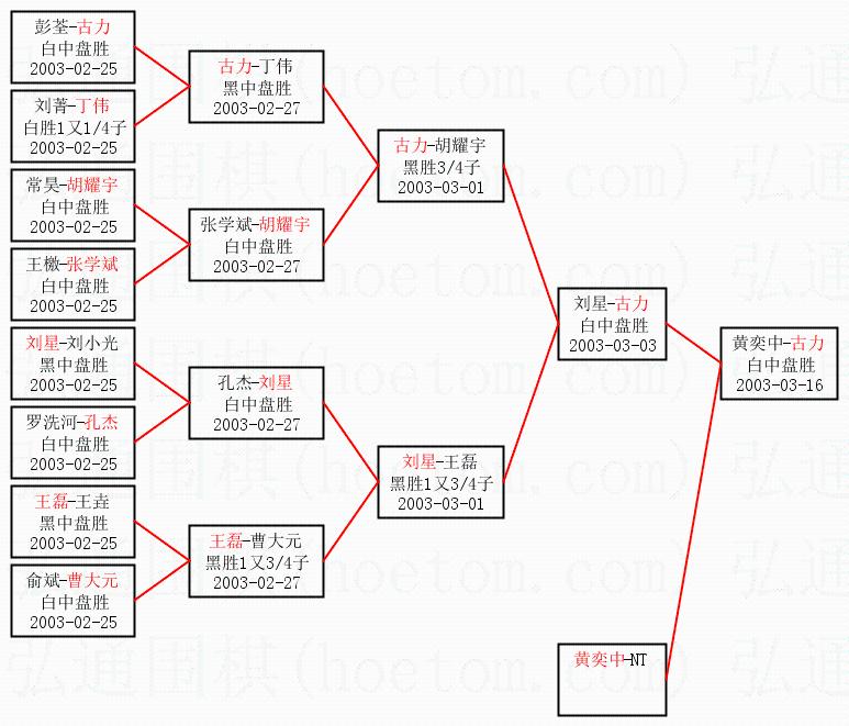 2.上半区半决赛古力获胜, 比分:古力 1:0 刘星。棋局: