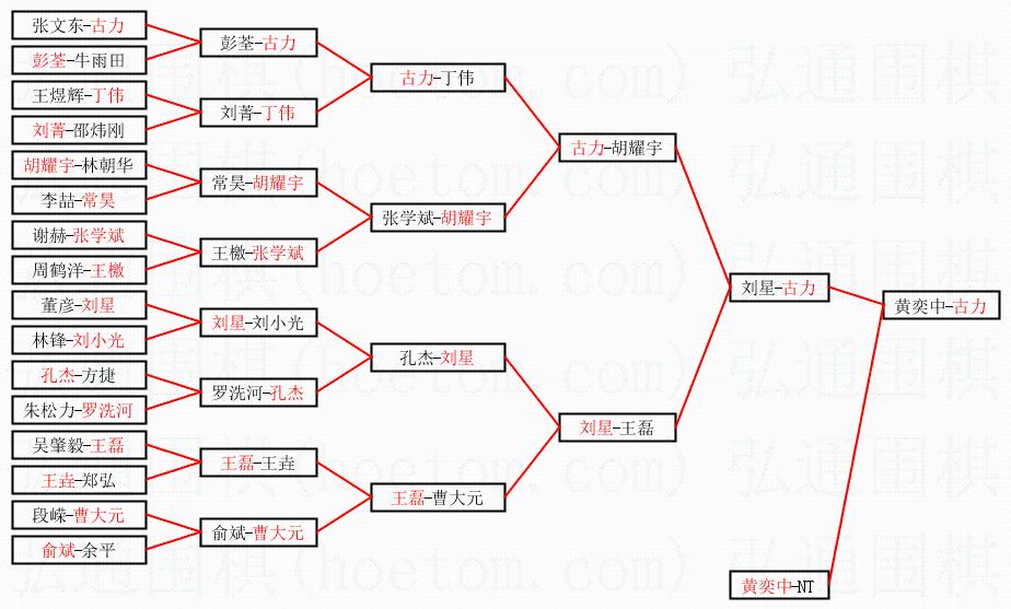 2.上半区半决赛古力获胜, 比分:古力 1:0 刘星。棋局: