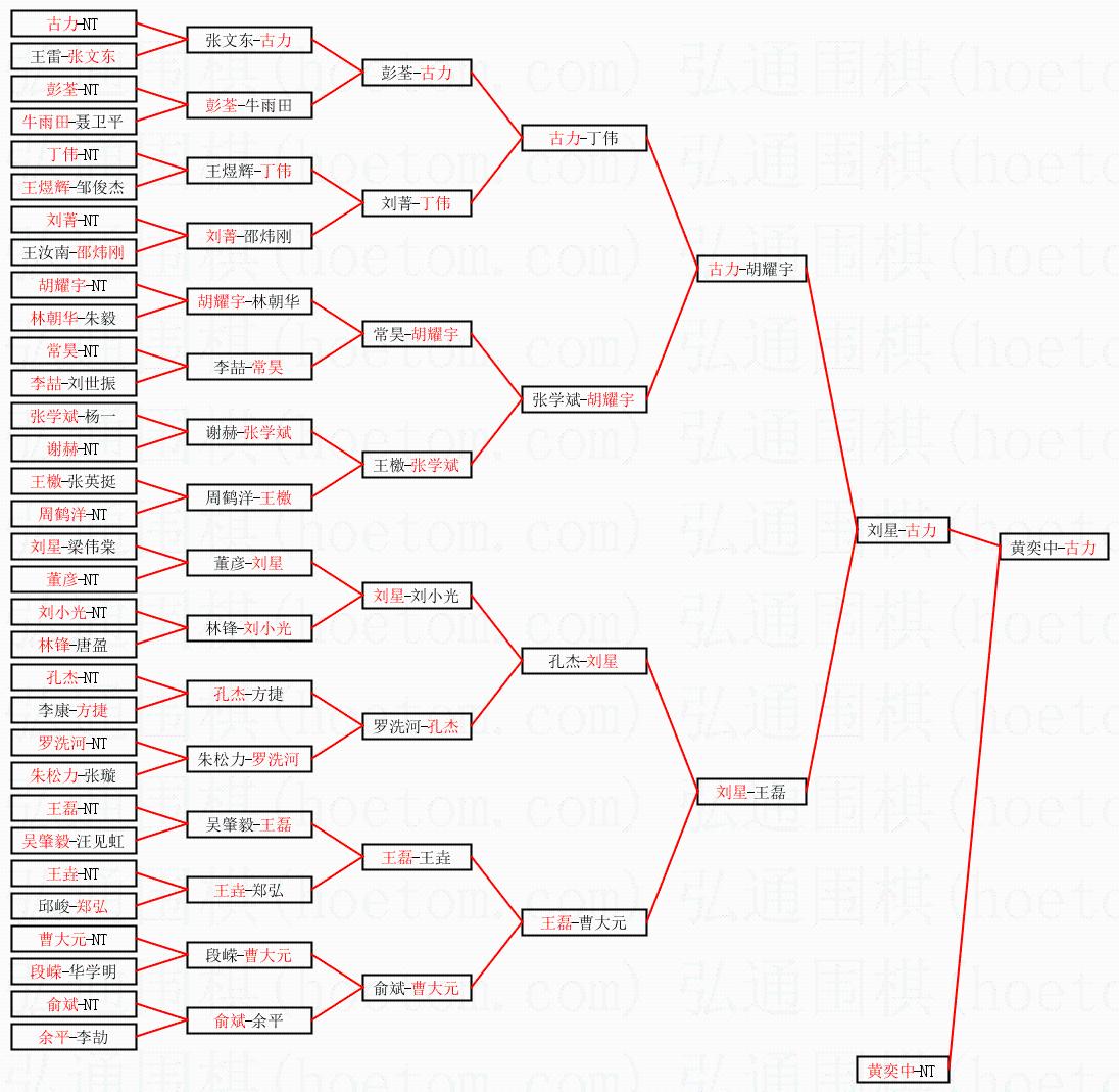 1.古力获得冠军,黄奕中获得亚军。决赛比分:古力2:1黄奕中。棋局: