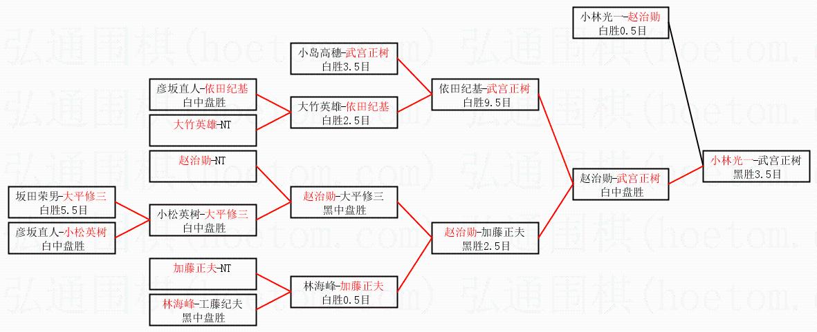 2.上半区半决赛赵治勋获胜, 比分:赵治勋 1:0 小林光一。棋局: