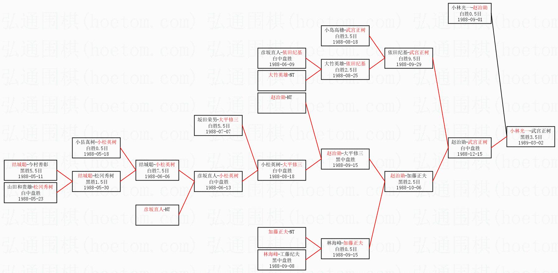 3.下半区半决赛武宫正树获胜,比分:武宫正树2:1赵治勋。棋局: