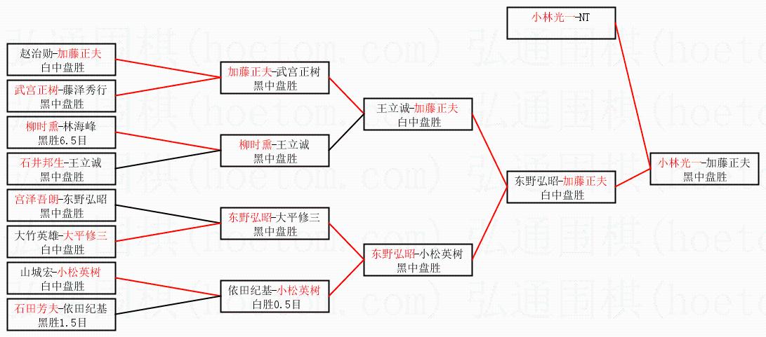 1.小林光一获得冠军,加藤正夫获得亚军。决赛比分:小林光一4:3加藤正夫。棋局: