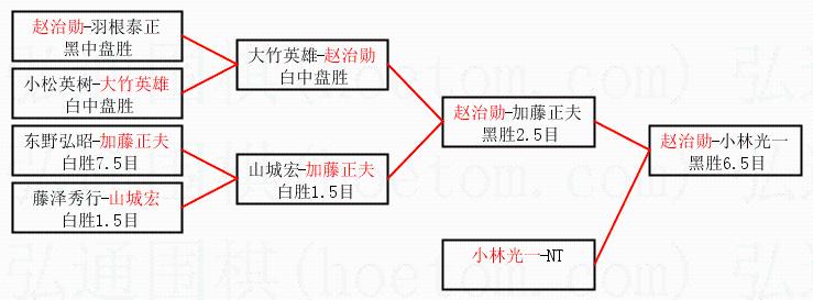 2.上半区半决赛赵治勋获胜, 比分:赵治勋 2:1 加藤正夫。棋局: