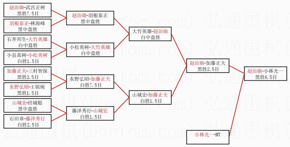 | 1.赵治勋获得冠军,小林光一获得亚军。决赛比分:赵治勋4:2小林光一。棋局: | ||