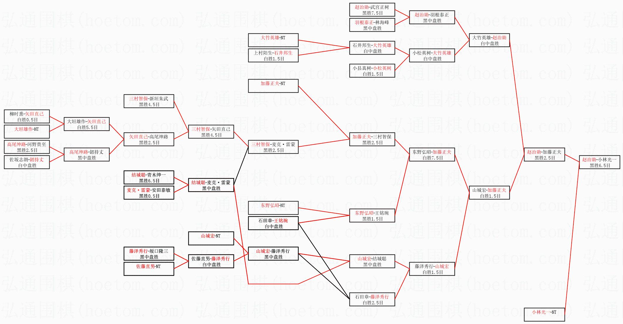 | 1.赵治勋获得冠军,小林光一获得亚军。决赛比分:赵治勋4:2小林光一。棋局: | ||
