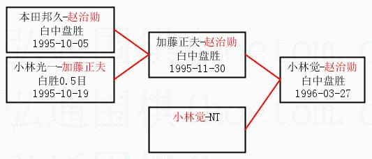 | 1.赵治勋获得冠军,小林觉获得亚军。决赛比分:赵治勋4:3小林觉。棋局: | ||