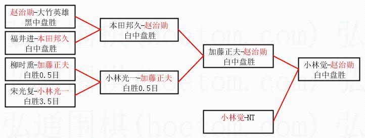 | 1.赵治勋获得冠军,小林觉获得亚军。决赛比分:赵治勋4:3小林觉。棋局: | ||