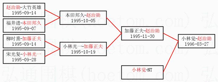| 1.赵治勋获得冠军,小林觉获得亚军。决赛比分:赵治勋4:3小林觉。棋局: | ||