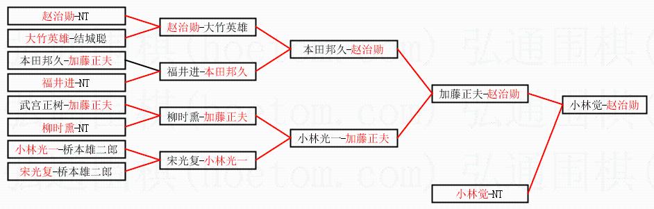 | 1.赵治勋获得冠军,小林觉获得亚军。决赛比分:赵治勋4:3小林觉。棋局: | ||