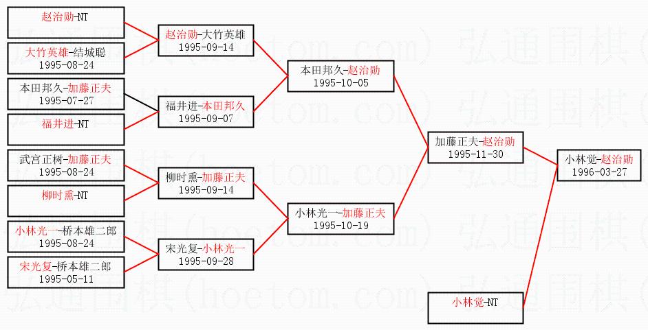 | 1.赵治勋获得冠军,小林觉获得亚军。决赛比分:赵治勋4:3小林觉。棋局: | ||
