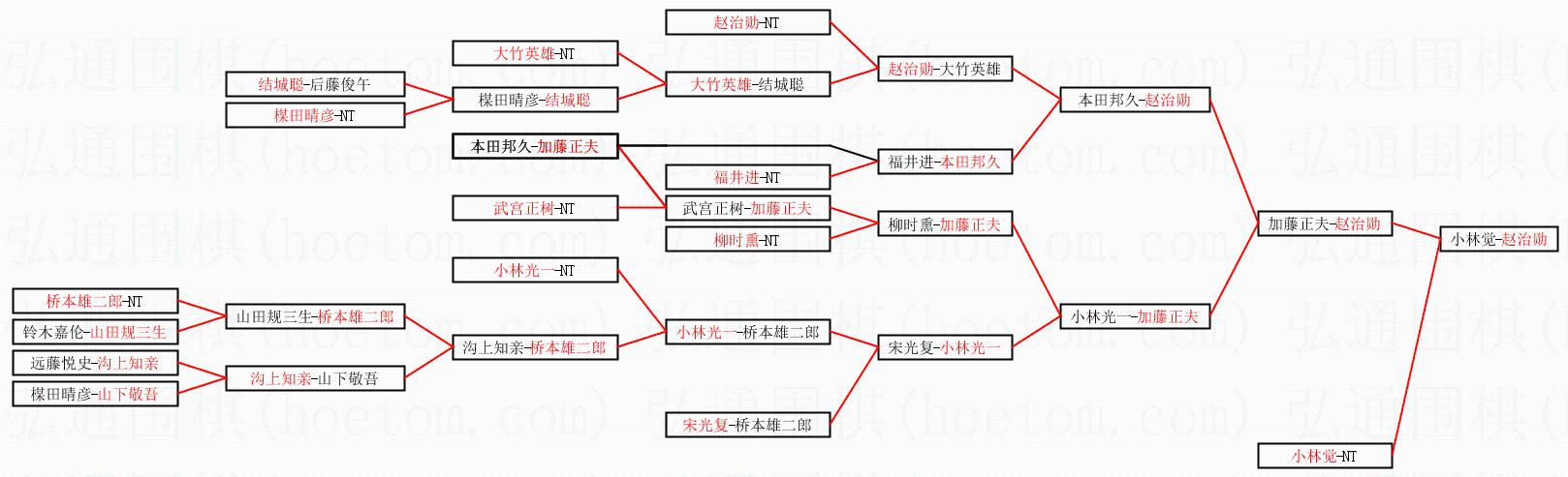 | 1.赵治勋获得冠军,小林觉获得亚军。决赛比分:赵治勋4:3小林觉。棋局: | ||