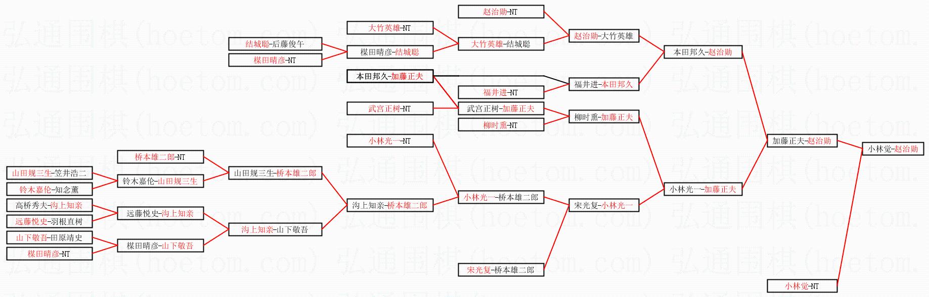 | 1.赵治勋获得冠军,小林觉获得亚军。决赛比分:赵治勋4:3小林觉。棋局: | ||